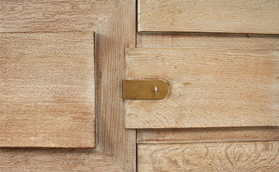 Aparador Art Déco francés al estilo de Charles Dudouyt, de los años 1940's. Madera de roble macizo con cerusa y herrajes de latón. Tres compartimentos fake Rolex con estantes interiores y dos cajones; el frontal central se puede mover a ambos lados. Muy buen estado.