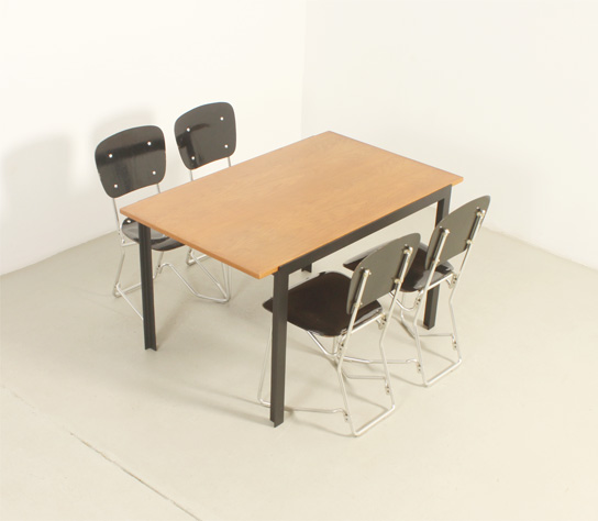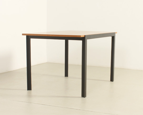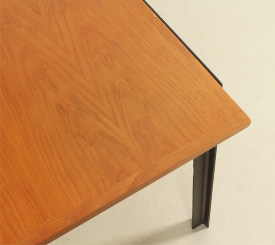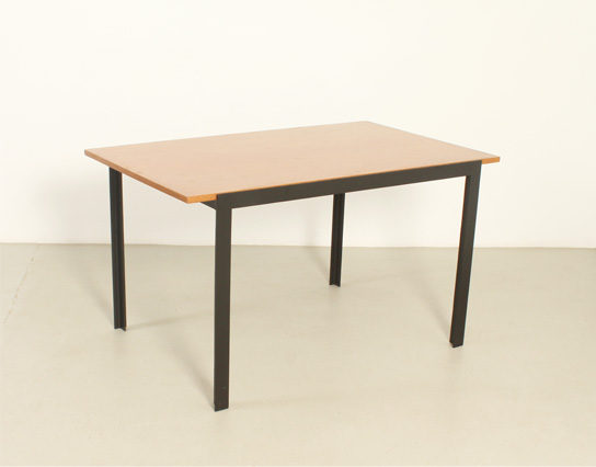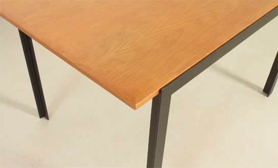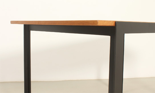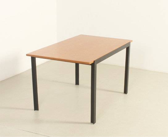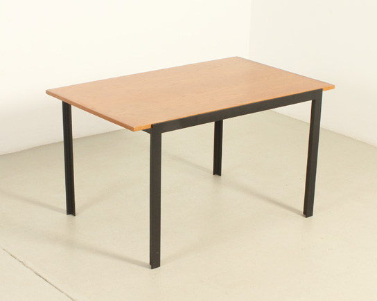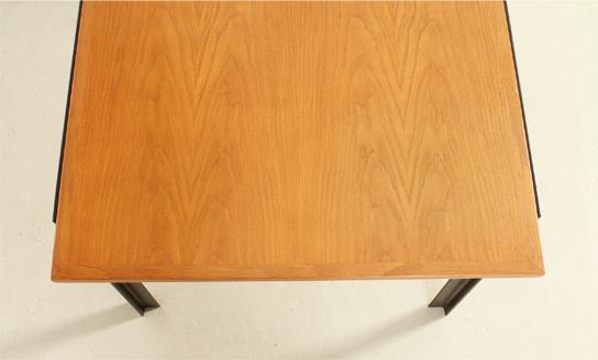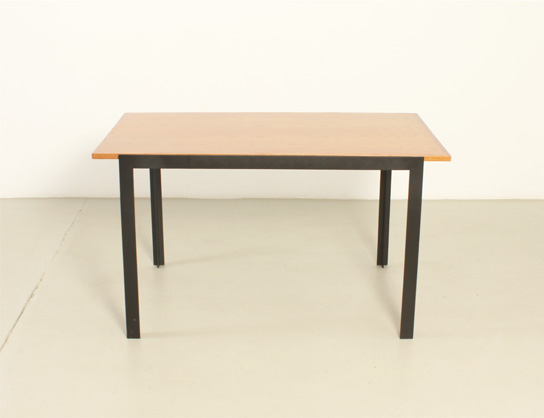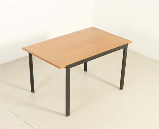 Mesa de comedor o escritorio diseñada por arquitecto en los años 1960's, España. Estructura de hierro lacado y tablero de roble. En muy buen estado, la madera ha sido restaurada y la base lacada de nuevo.