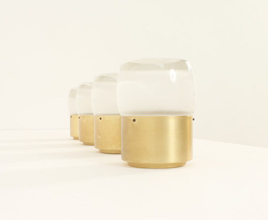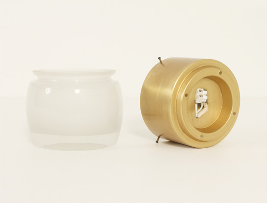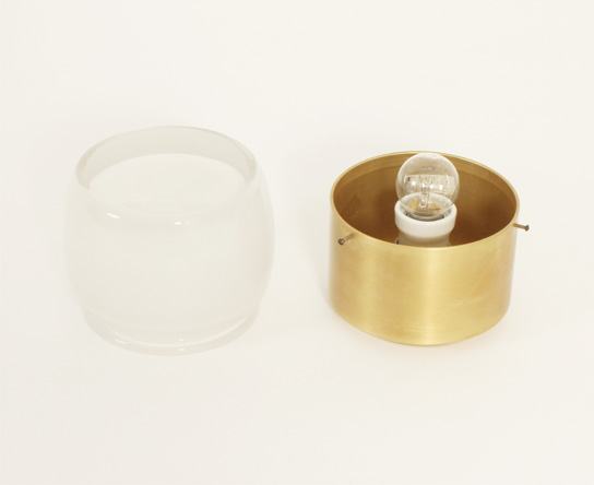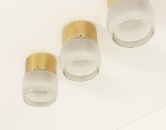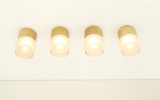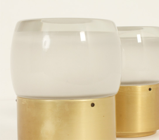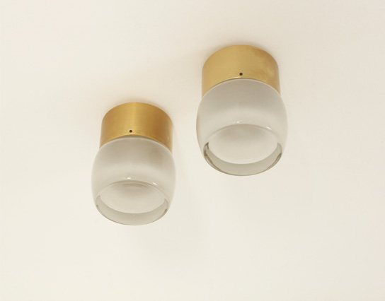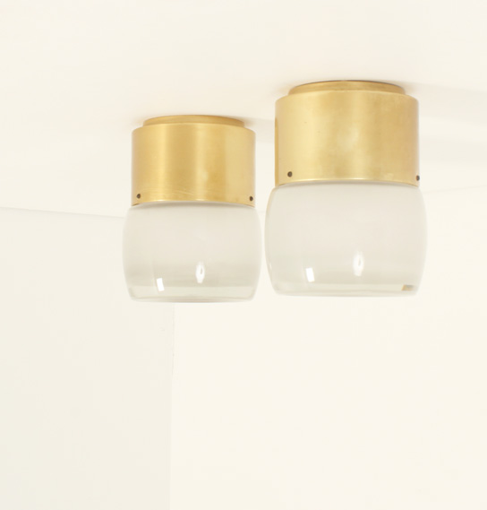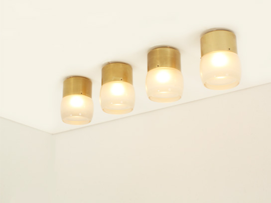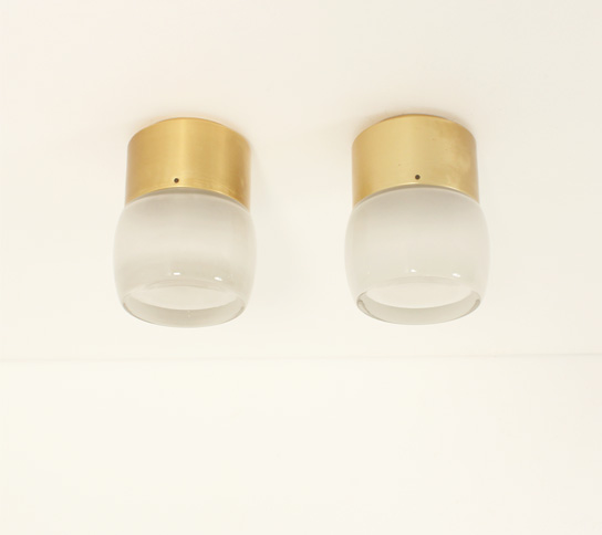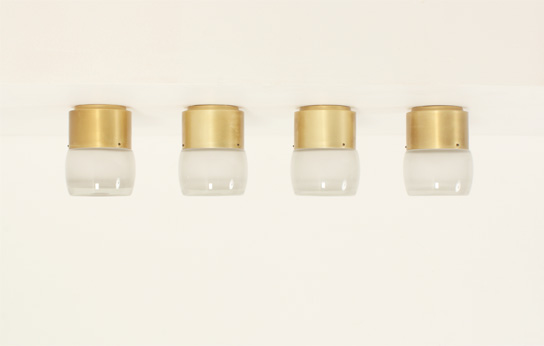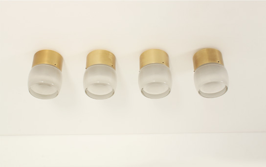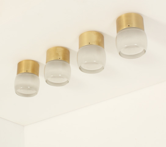 SET OF FOUR FLUSH MOUNTS BY STAFF LEUCHTEN, GERMANY, 1960's | Set of four large flush mounts model 7104 produced by Staff Leuchten, Germany, 1960's. Brass finished aluminum base and optical glass reflector with matte interior. Very good condition.