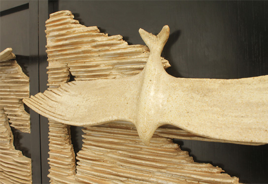 CERAMIC WALL RELIEFS BY JOSEP MARIA PALOU, SPAIN, 1980's | Pair of wall art with ceramic reliefs by Josep Maria Palou, Spain, 1980's. Black ebonized oak wood frames with ceramic relief. Very good condition.