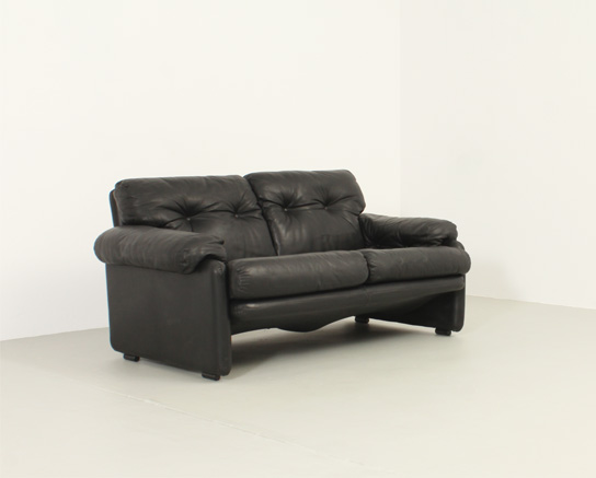 CORONADO TWO-SEATER SOFA BY TOBIA SCARPA FOR B & B ITALIA, 1969 | Two seater Coronado sofa designed in 1966 by Tobia Scarpa for B & B Italia, Mobilplast edition, Spain. Upholstered in original black leather. Very good condition.