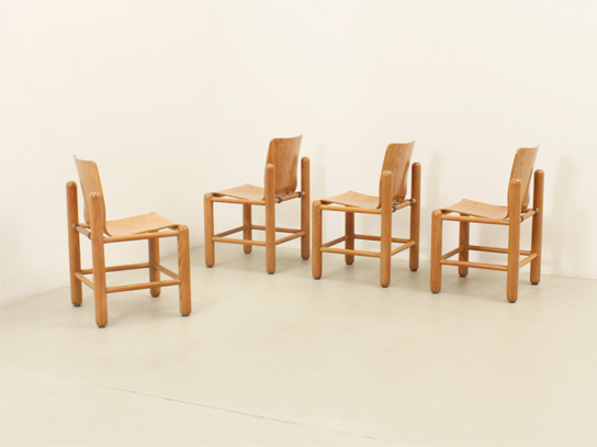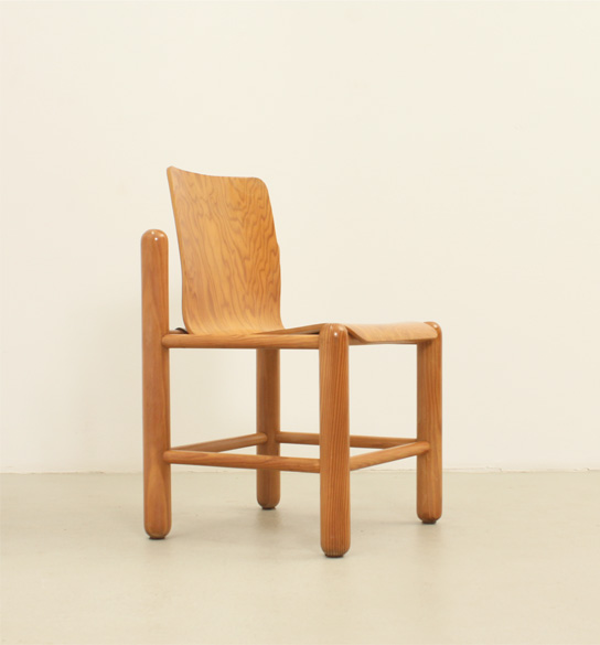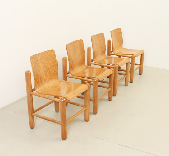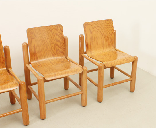 SET OF FOUR DINING CHAIRS BY KNUD FRIIS & ELMAR MOLTKE NIELSEN, DENMARK, 1970's | Set of four dining chairs designed by Danish architects Knud Friis and Elmar Moltke Nielsen for Getama, Denmark, 1970's. Pine wood with with plywood seat and metal. Very good condition.