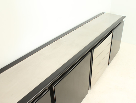 Aparador Parioli diseƱado en 1971 por Lodovico Acerbis y Giotto Stoppino para Acerbis, Italia. Madera de roble lacado y acero inoxidable. Cuatro cajones y tres espacios con estantes de cristal. Estado excelente.