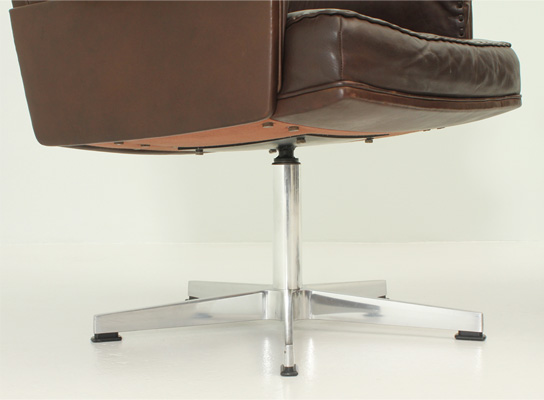 Pareja de sillones de oficina DS 35 diseñados y producidos en los años 1960's por De Sede, Suiza. Tapizados con piel de calidad extra en color chocolate y base giratoria en acero pulido. Muy buen estado.