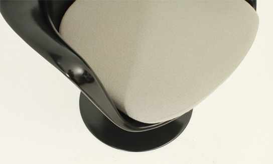 Silla Tulip diseƱada por Eero Saarinen para Knoll International en 1956, USA. Asiento en fibra de vidrio negra y base en aluminio moldeado con cojin con tela nueva de Kvadrat. Version fija. Estado excelente.