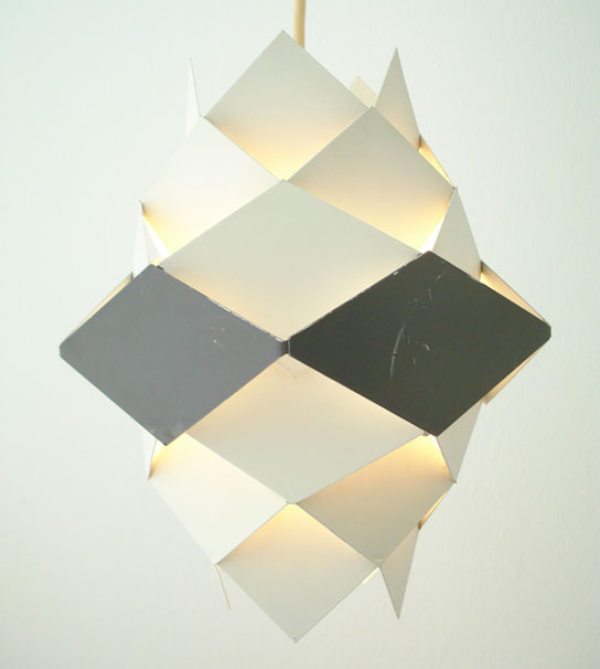 A nice set of three small Symfoni lamps designed by Preben Dal for HF. Belysning, Denmark, mid 60's. White and dark grey enamelled metal. Used condition with some small paint loss.
