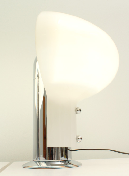 Pareja de lámparas de mesa Leuké diseñadas en 1972 por Celli Tognon para la compañía italiana Stilnovo. Gran difusor en acrílico y base en metal cromado. Muy buen estado con alguna pequeña marca en el cromo.